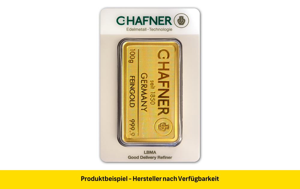 Wir versenden grundsätzlich nach Verfügbarkeit Barren der Hersteller Umicore, Heraeus, Degussa, Valcambi, C. Hafner und Heimerle + Meule.
