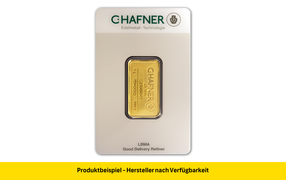 Mit einem 5g Goldbarren können Sie einen ersten Schritt in Richtung finanzielle Absicherung für die eigene Zukunft gehen. Egal, ob als Notgroschen für die eigenen alltäglich anfallenden Dinge (zum Beispiel unvorhergesehene Reparaturen etc.) oder als Starthilfe für einen jungen Menschen ins eigene Leben: Unsere 5g Goldbarren sind ideal für jeden Anlass.